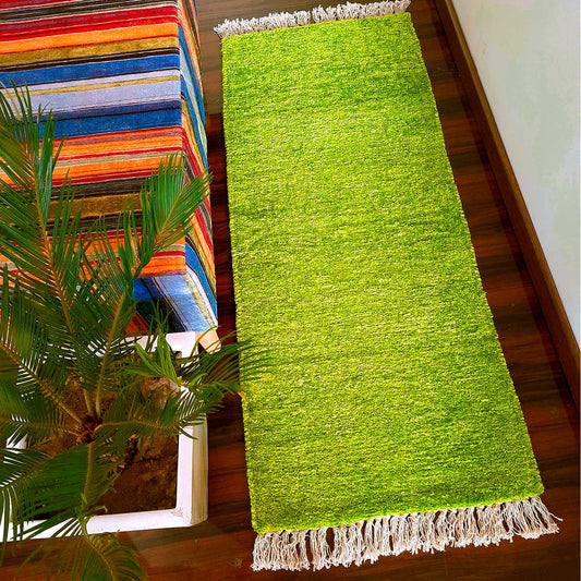 Avioni Bedside/Hallway/Pooja Carpets In Faux Silk Green-56cm x 140cm (~22Inch x 55Inch) -