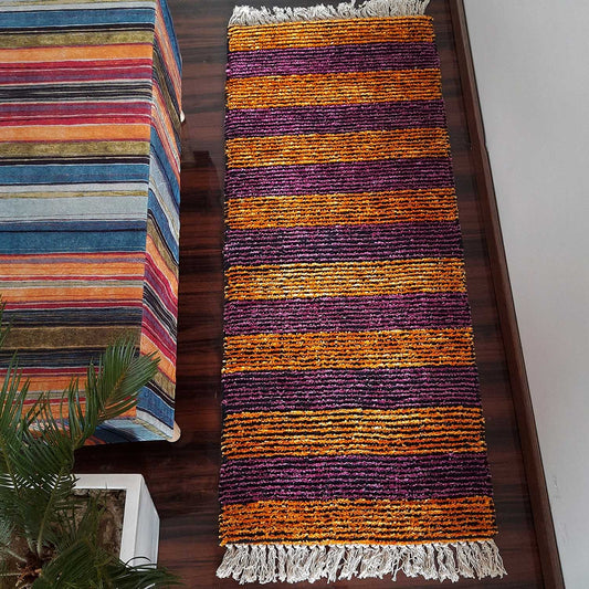 Avioni Bedside/Hallway/Pooja Carpets In Faux Silk Orange Multi-56cm x 140cm (~22Inch x 55Inch) -