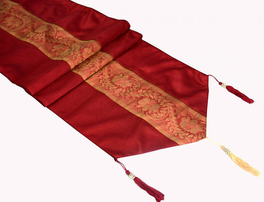 Avioni Premium Faux Silk Ethnic Brown Table Runner Festival Collection -57 x 12.5 Inches -