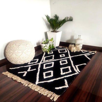 Avioni Atlas Collection- Micro Moroccan Lattice Carpets In White and Black Double Shade