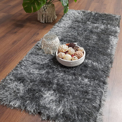 Avioni Handloom Slate Grey Fur Premium Bedside Carpet – 55cm x 137cm (~22″ x 55″)