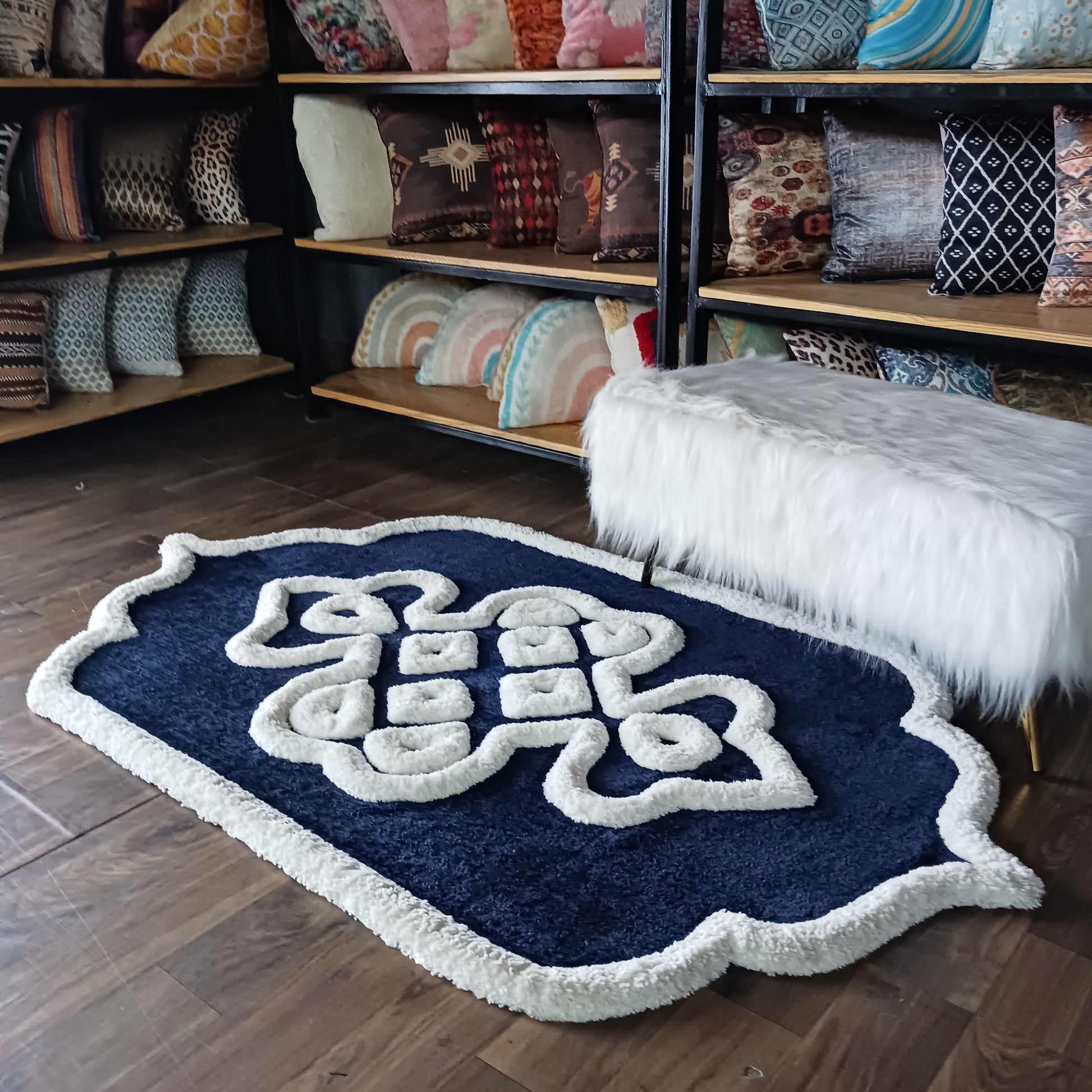 Avioni Luxury Collection- Plush Luxury Navy and White 3D Border Carpet for Living / Bed Room