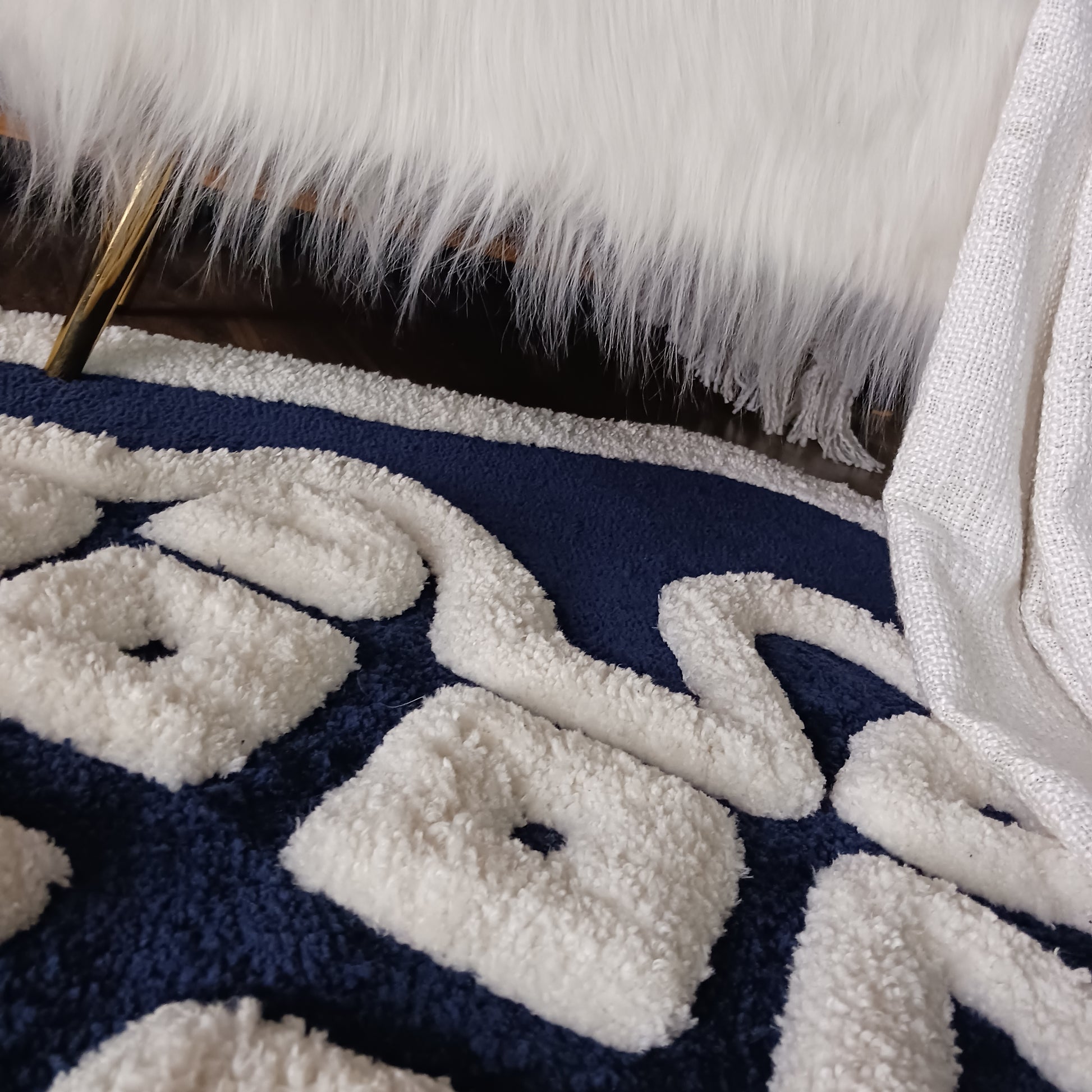 Discover the Avioni Luxury Collection, featuring a 3D luxury traditional embossed design in a two-color palette of luxury Navy and white tones. This tufted soft plush carpet is available in different sizes, making it the perfect addition to any living room.