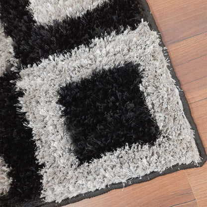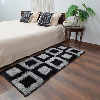 Handloom Shaggy Black And Gray Square Carpet/Bedside Runners (55cm x 137cm (~22″ x 55″)) by Avioni