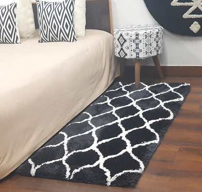 Luxuriate in the comfort of a plush, Shaggy Black Runner with White Moroccan Design! Perfect for bedroom, hallway, or living room, this runner adds cozy vibes wherever it's placed. Enjoy the inviting softness of a premium bedside runner today!