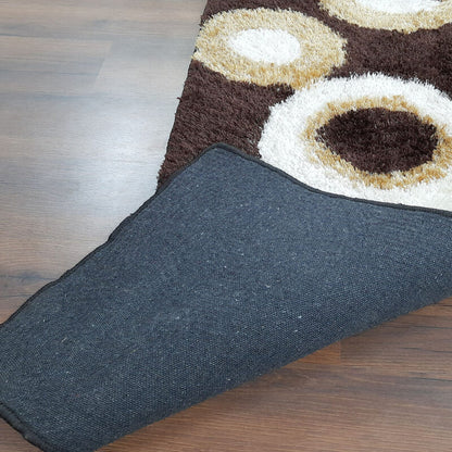 Handloom Shaggy Coffee And Beige Rounds Premium Bedside Carpet (55cm x 137cm (~22″ x 55″)) By Avioni