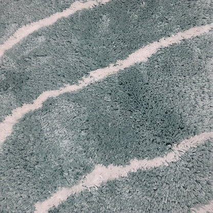 Handloom Shaggy Aqua Carpet With White Wave Design /Bedside Runners by Avioni Home