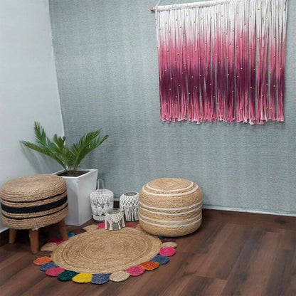 Jute Carpet – Braided Area Rugs – Circular Rug with Contemporary Colored Pattern over Natural Handmade unbleached Centre – 110 cm Diameter – Avioni