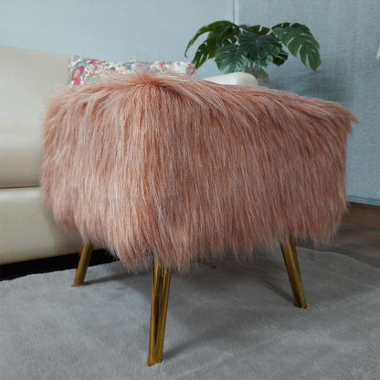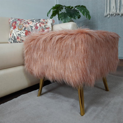 Noviato Collection – Light Redwood Premium Double Shade Faux Fur Footstool Gold Metal Legs Modern On-Trend Style Square Multi-Functional Ottoman Stool Seat, 40cm x 40cm x 40 cm | from Avioni
