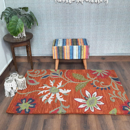 Wool Floral Beautiful Hand Tufted Carpet | Loop Pile Rug | Avioni -90cm x 150cm (~3×5 Feet)