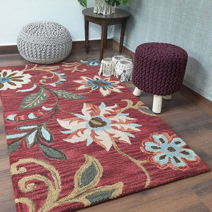 Wool Floral Beautiful Hand Tufted Carpet | Loop Pile Rug | Avioni -90cm x 150cm (~3×5 Feet)