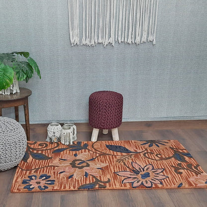 Wool Hand Tufted Beautiful Floral Cozy Carpet | Loop Pile | Avioni -90cm x 150cm (~3×5 Feet)